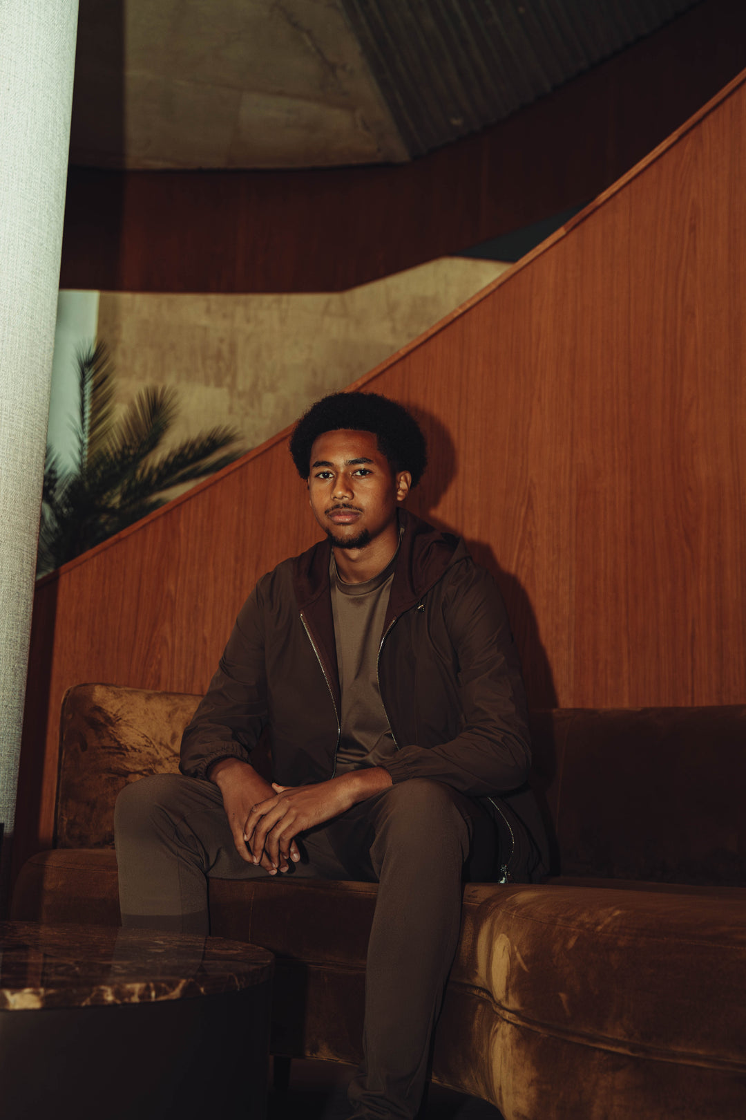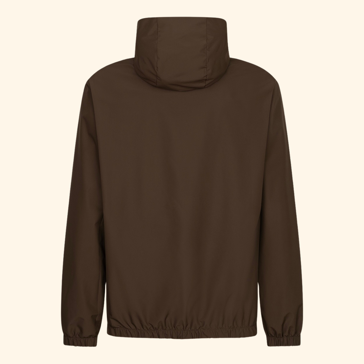 De donkerbruine binnenkant voelt uitzonderlijk zacht aan en vormt een stijlvol contrast met de mocha bruine buitenzijde. De geïntegreerde capuchon geeft het ontwerp een eigentijdse, sportieve touch, zonder afbreuk te doen aan het minimalistische karakter.